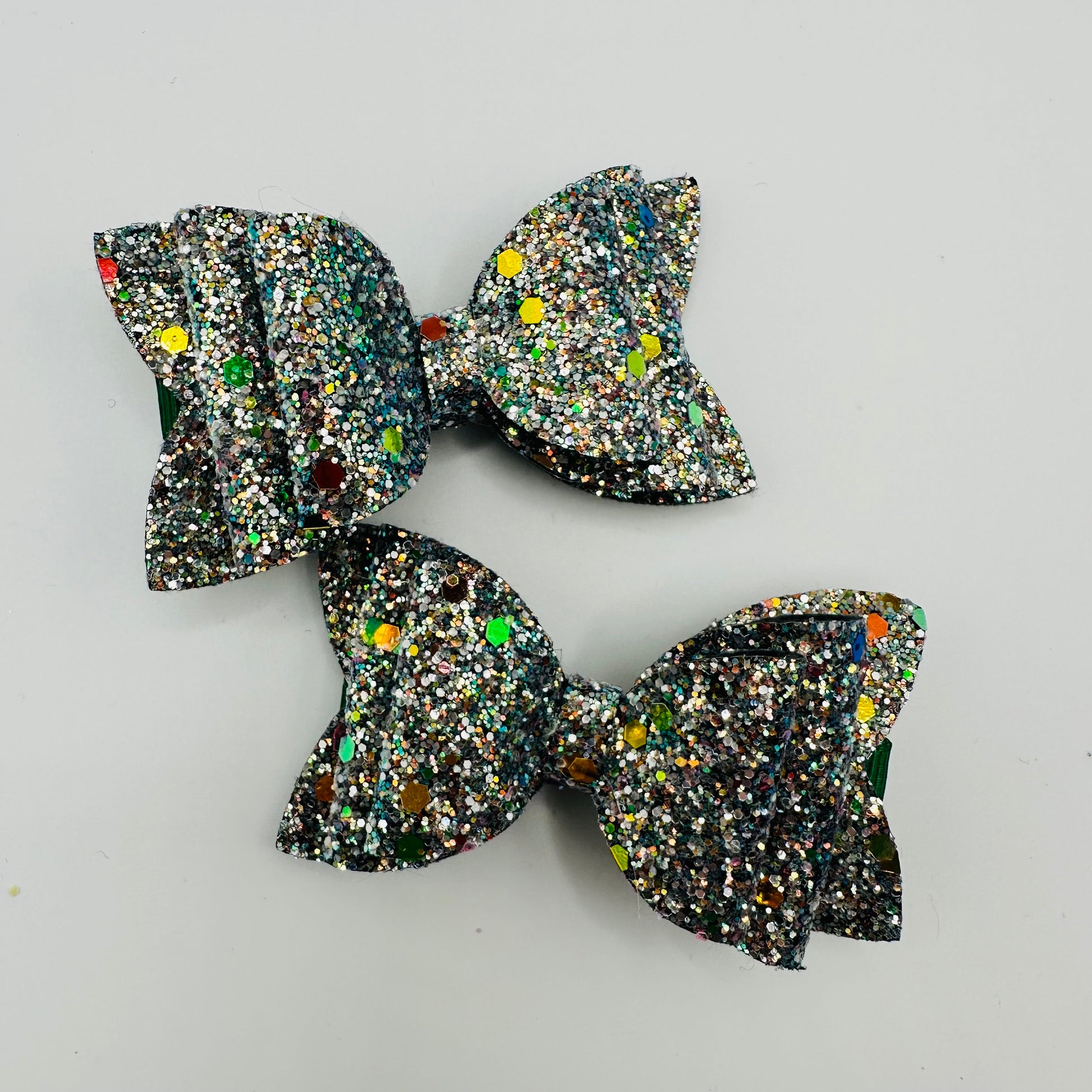 2.5 inch leatherette bows in glittery green